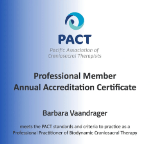 In 2013 I started training as a biodynamic craniosacral therapist in Vancouver and I fell in love with the powerful healing mechanisms that this work offers to myself and my clients. I am a registered CST and member of good standing of the PACT